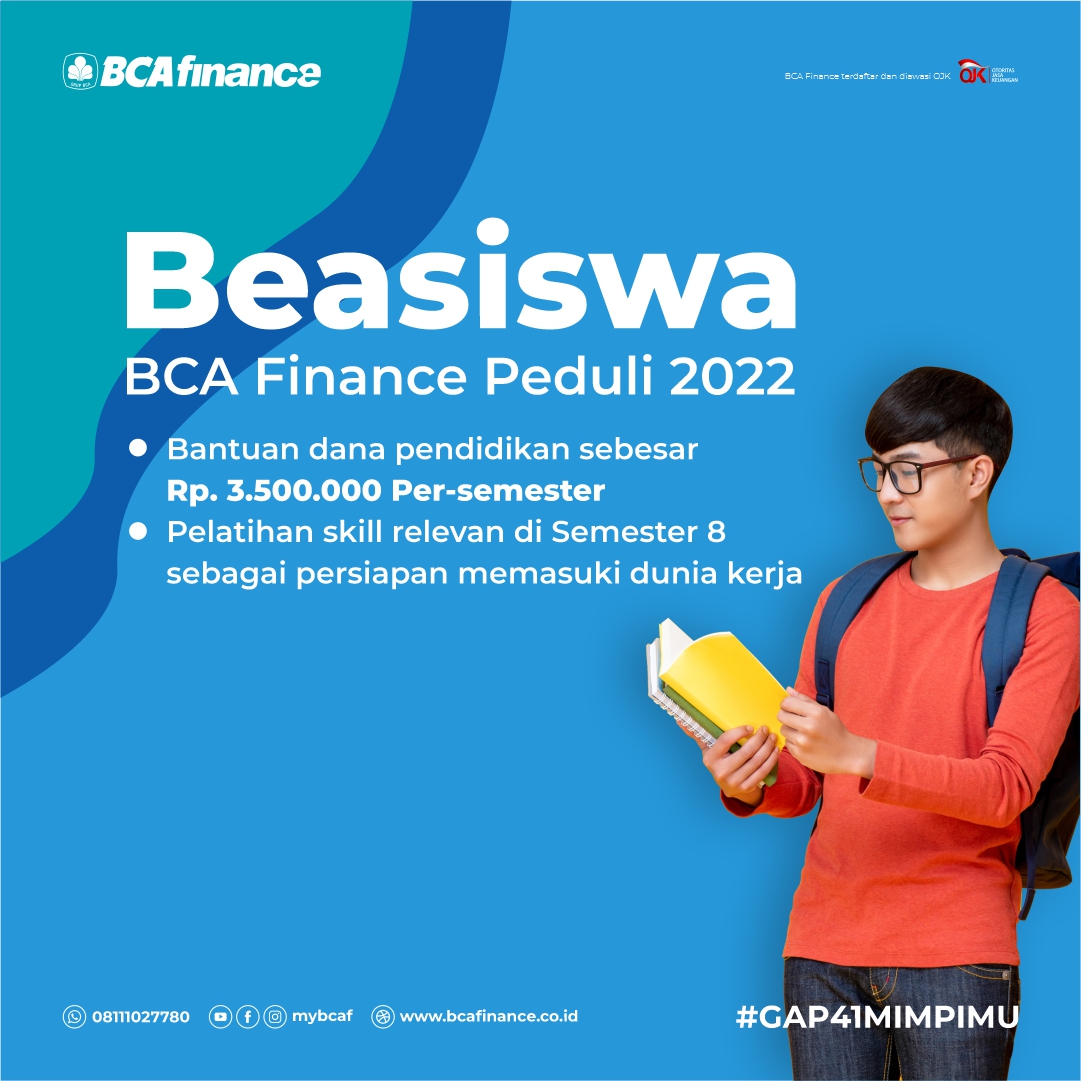 Sebab itu, BCA Finance berkomitmen melakukan pengembangan masyarakat dan meningkatkan kualitas pendidikan masyarakat dengan diluncurkannya program Beasiswa BCA Finance Peduli. Beasiswa ini ditujukan kepada seluruh mahasiswa S1 yang memenuhi persyaratan.
